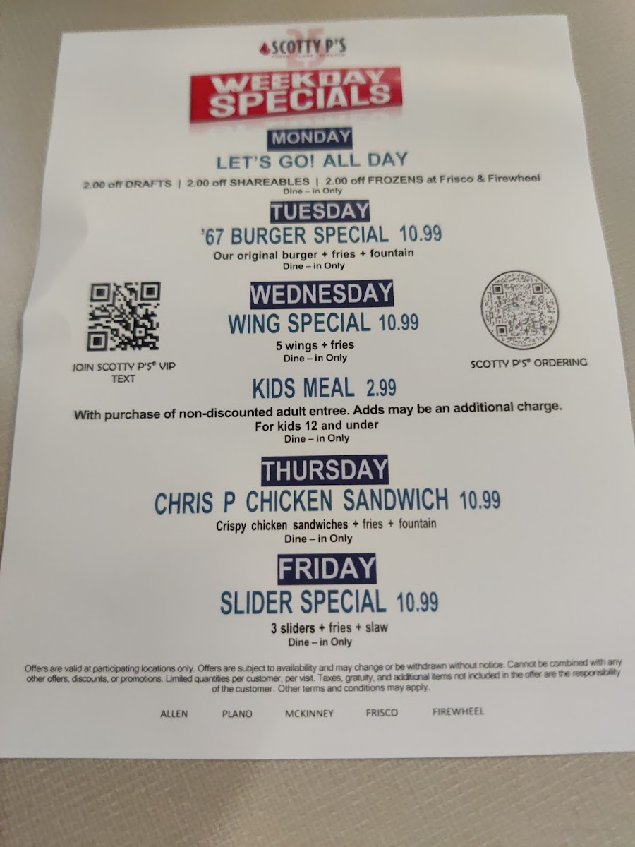 Scotty P's Plano Menu
